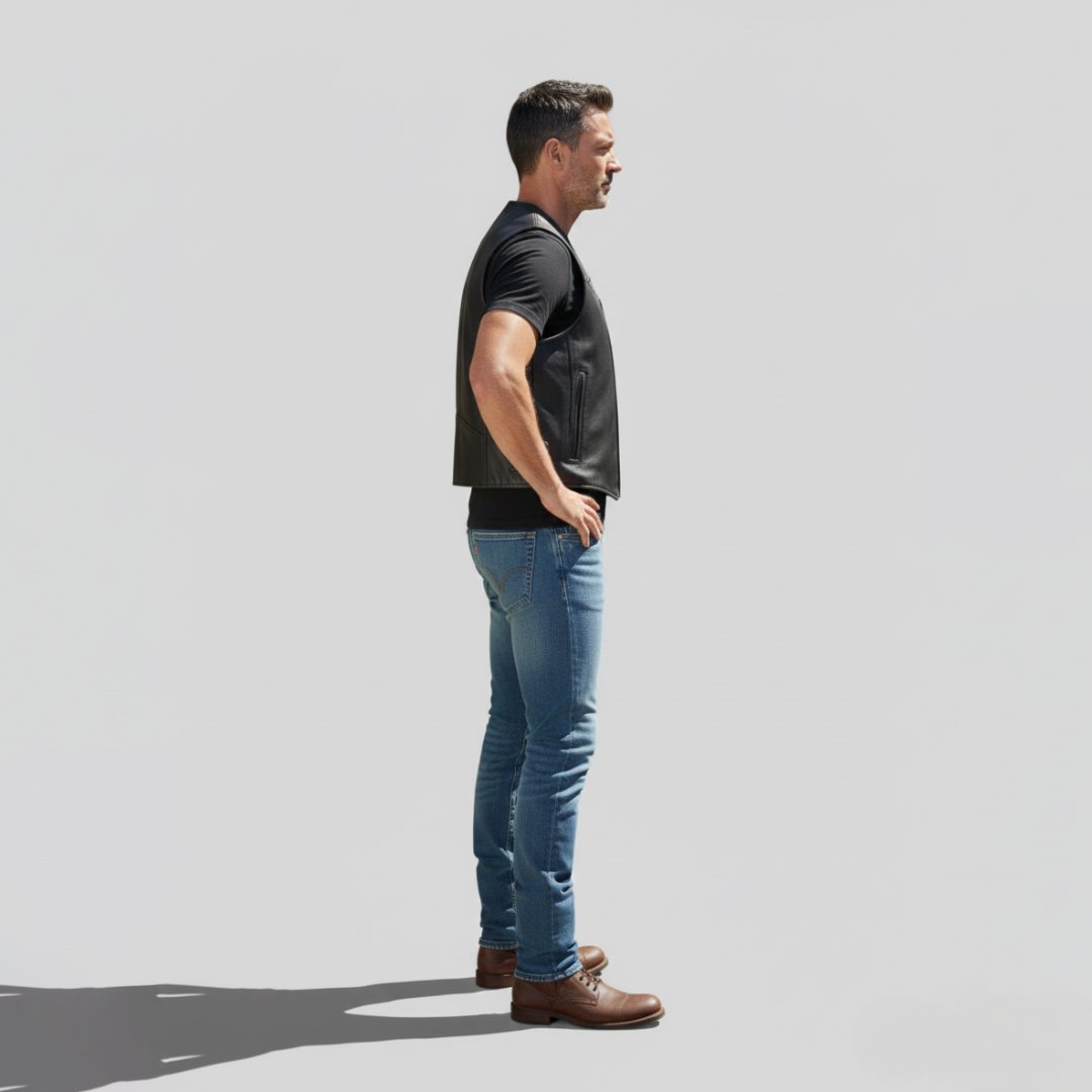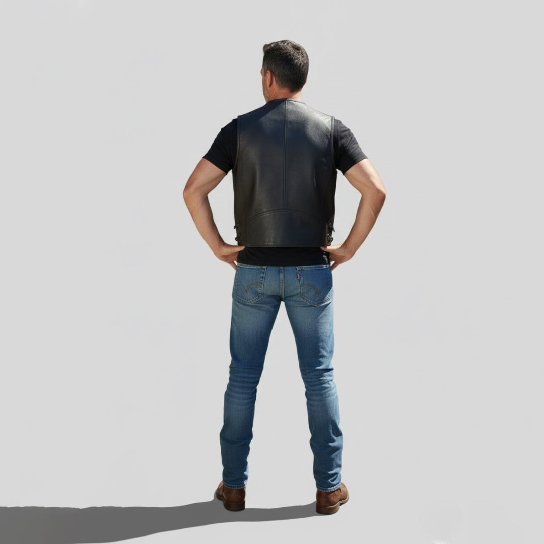 This stylish sleeveless biker vest is crafted from high-quality genuine lamb leather, offering a soft texture, durability, and a premium look. Designed with a modern rugged aesthetic, it’s perfect for casual wear and motorcycle-inspired fashion.