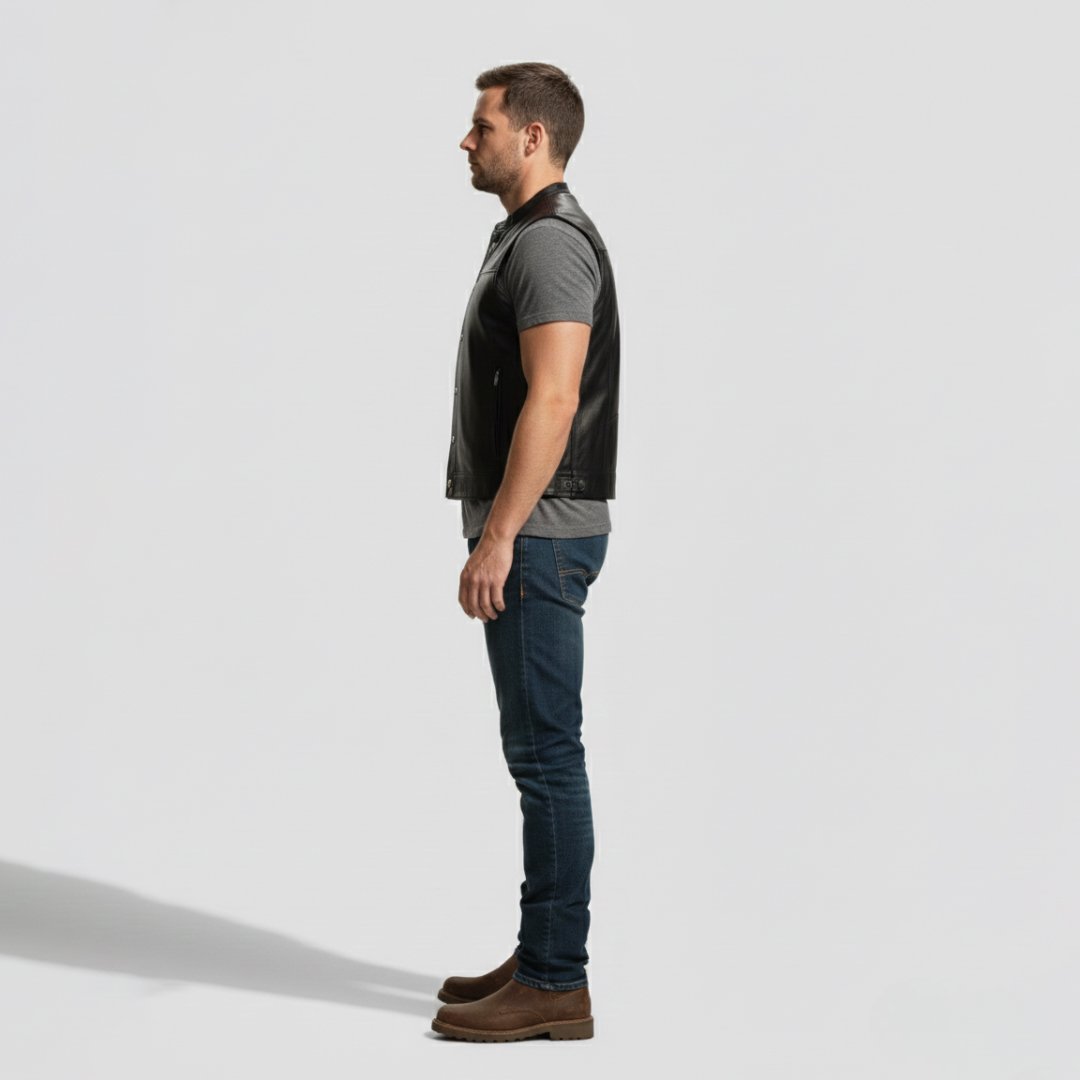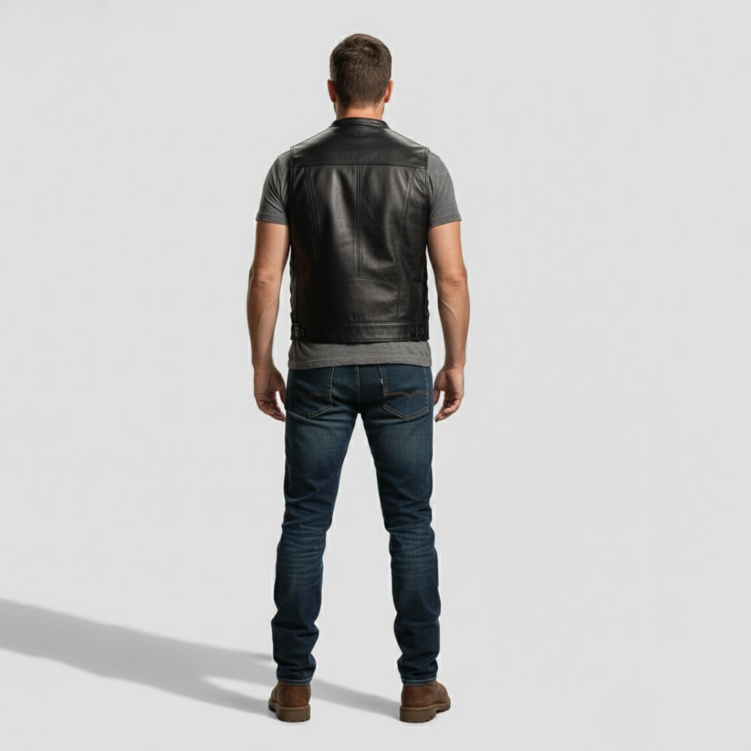 This stylish sleeveless biker vest is crafted from high-quality genuine lamb leather, offering a soft texture, durability, and a premium look. Designed with a modern rugged aesthetic, it’s perfect for casual wear and motorcycle-inspired fashion.