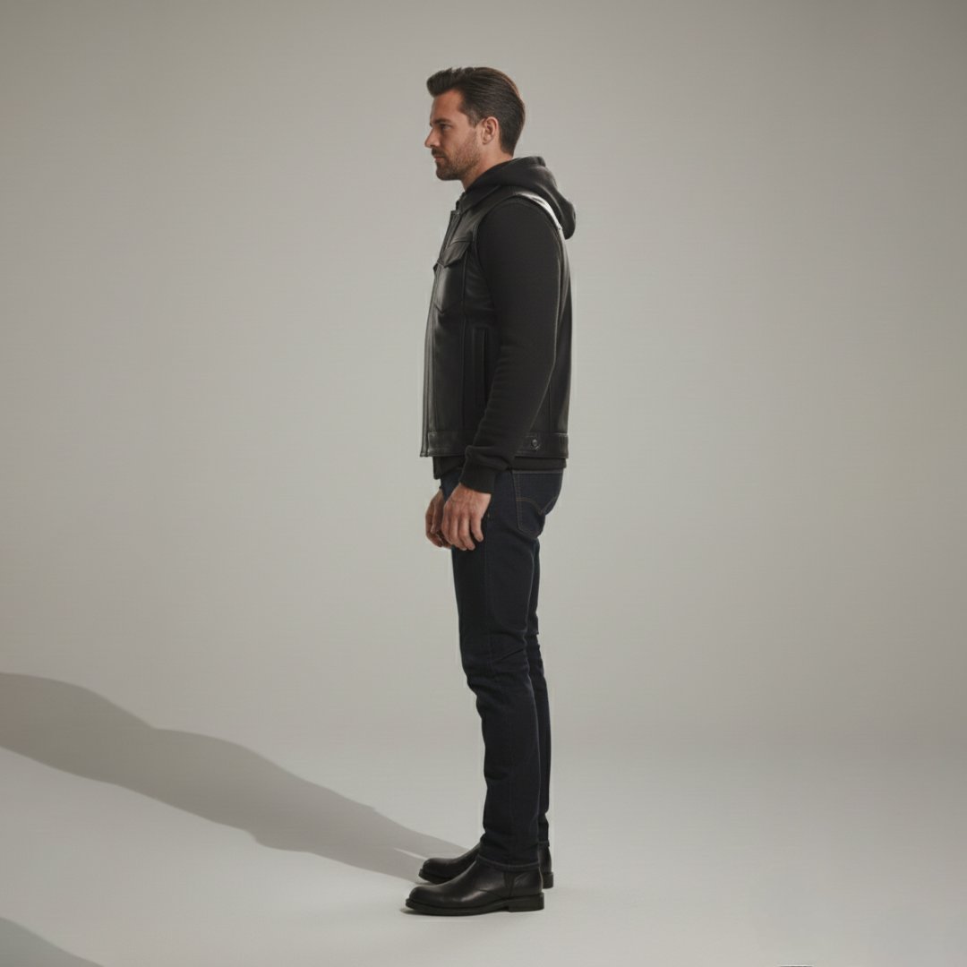 This stylish sleeveless biker vest is crafted from high-quality genuine lamb leather, offering a soft texture, durability, and a premium look. Designed with a modern rugged aesthetic, it’s perfect for casual wear and motorcycle-inspired fashion.