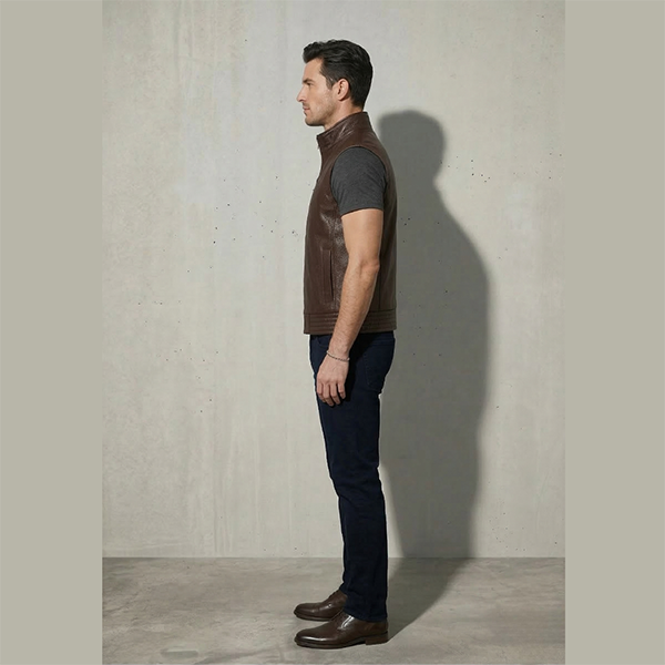 This men’s fashion leather vest is designed to deliver a bold and stylish look with a modern edge. Crafted from high-quality leather, the vest offers durability, comfort, and a premium feel. The unique suspender-style shoulder straps with metal buckles add a distinctive biker-inspired design, making it stand out from ordinary vests.