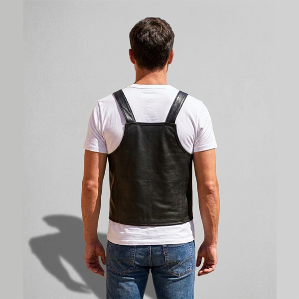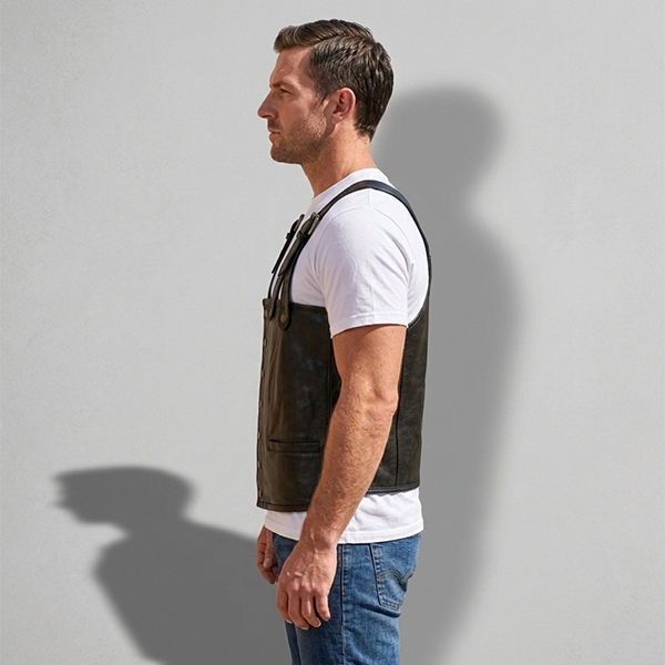 This men’s fashion leather vest is designed to deliver a bold and stylish look with a modern edge. Crafted from high-quality leather, the vest offers durability, comfort, and a premium feel. The unique suspender-style shoulder straps with metal buckles add a distinctive biker-inspired design, making it stand out from ordinary vests.
