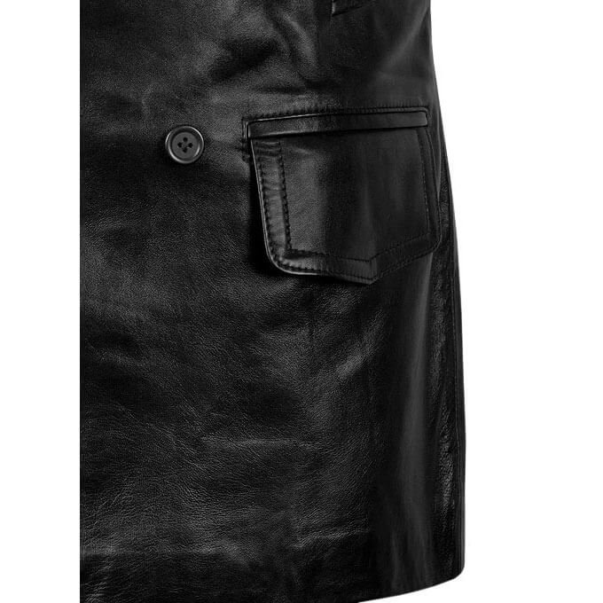 Designed for a modern fit, this leather trench coat promises both practicality and elegance. The coat is equipped with multiple pockets to store your essentials, while the soft lining ensures a cozy fit. Available in a custom-made size or standard sizing, you can trust that this coat will provide an impeccable fit and lasting quality.