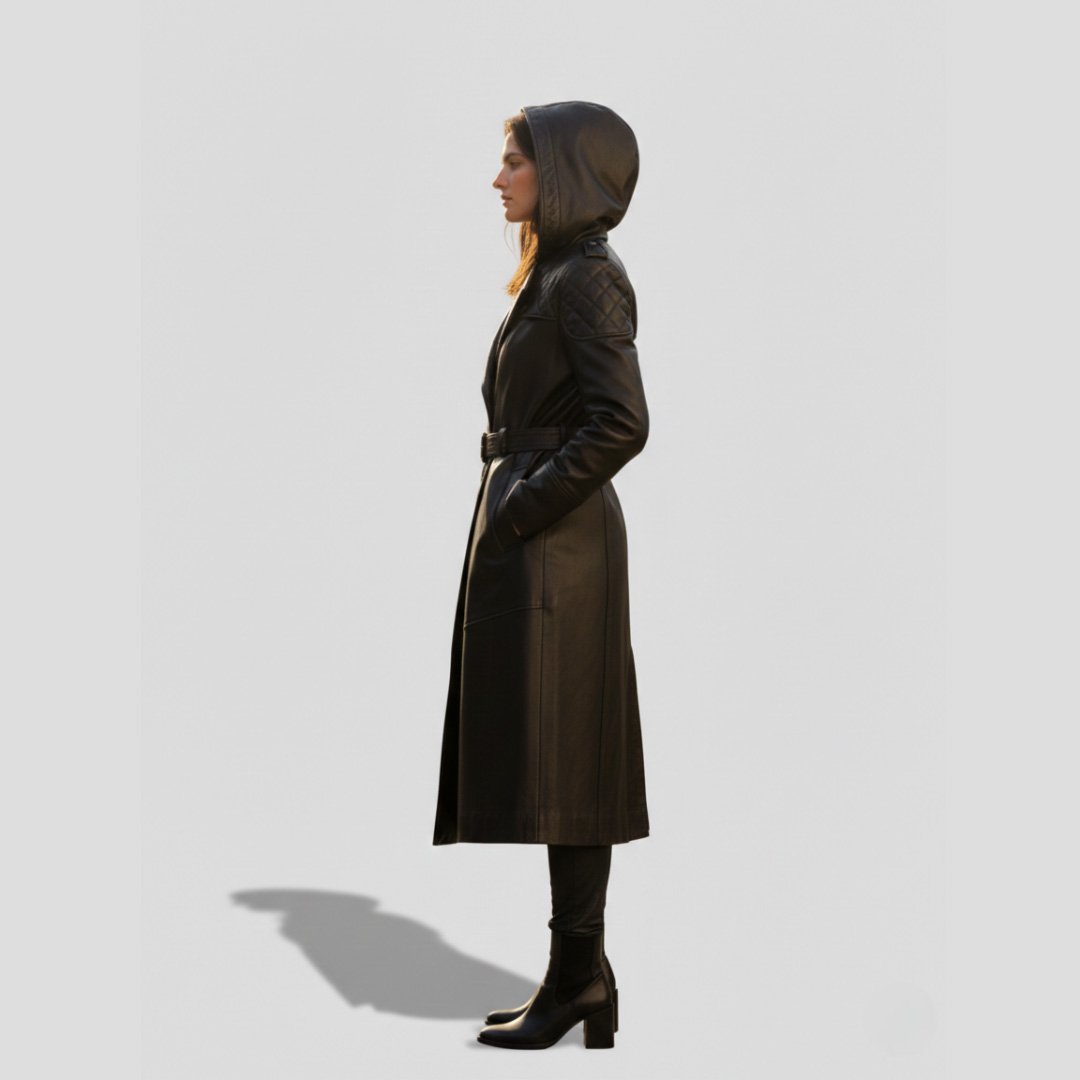 This womens’s leather long coat combines a bold, vintage-inspired design with premium craftsmanship. Made from high-quality genuine leather, the coat offers durability, comfort, and a luxurious feel. The long silhouette provides extra coverage and a stylish, commanding look.
