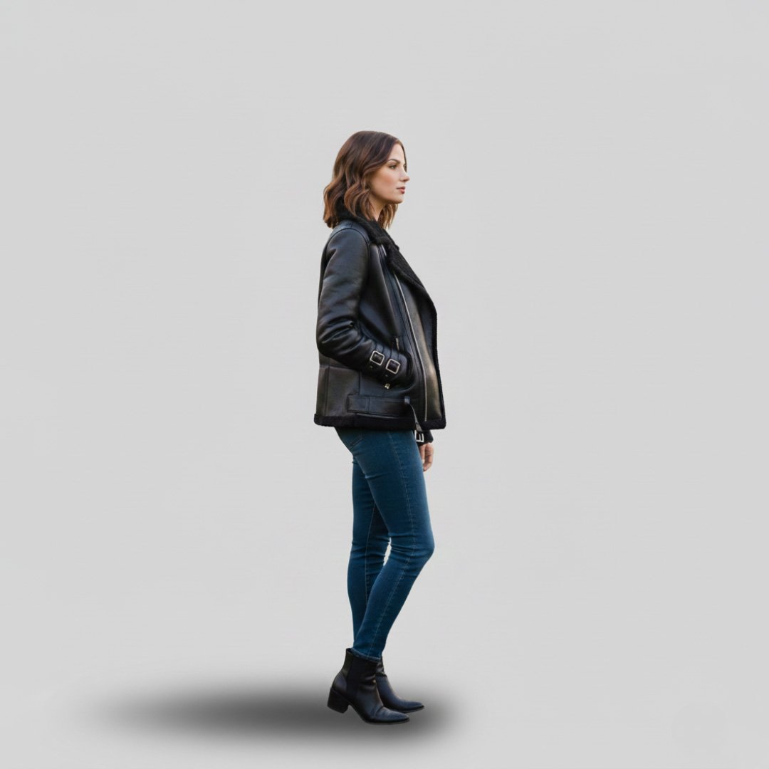 The shearling-lined Complete Inner Sherpa Furr provide warmth and visual contrast, making it ideal for cold-weather collections. A full front YKK zipper, functional side pockets, and a classic aviator-inspired silhouette highlight both practicality and style.