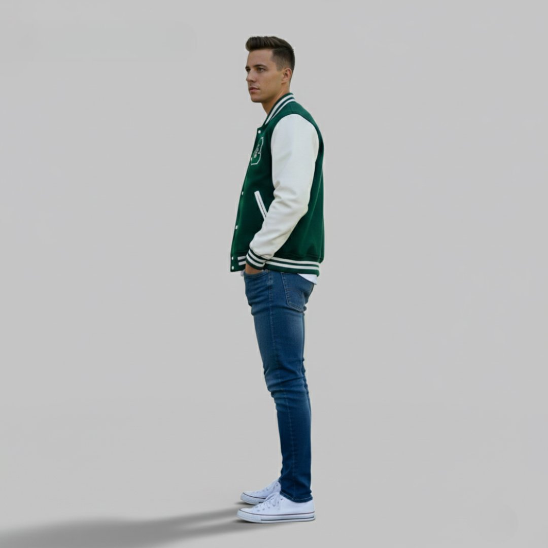 This leather varsity jacket blends classic American varsity design with a modern streetwear edge. Featuring premium black leather sleeves and a durable black fabric body, the jacket delivers a bold yet refined look. The front showcases striking “PIRATES” embroidered lettering, while the sleeves are detailed with unique patches for an authentic varsity aesthetic.