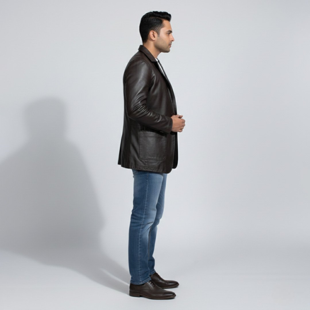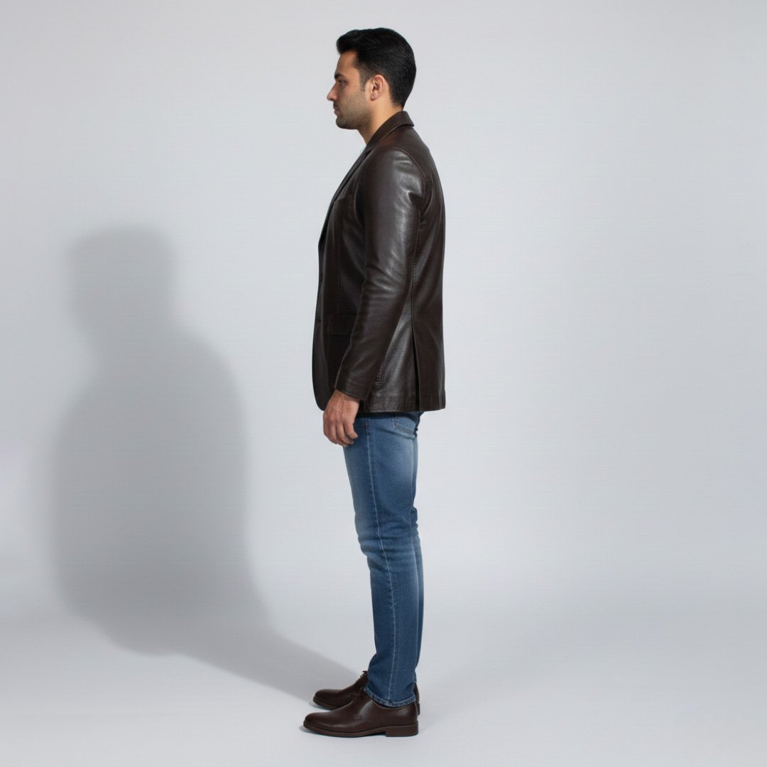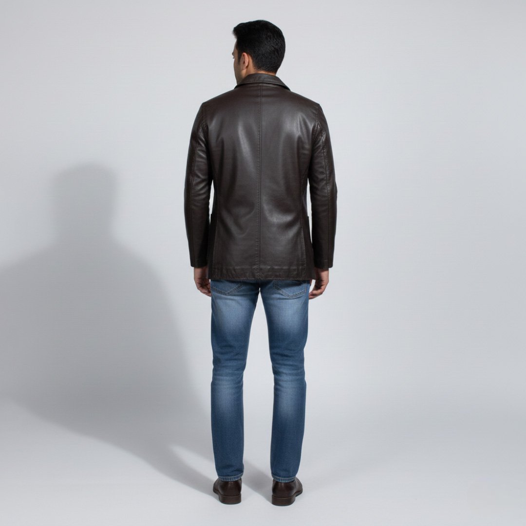 Upgrade your style with this sleek and modern men’s leather jacket, designed for a confident and fashionable look. Crafted from high-quality leather, this jacket features a minimalist stand collar design and a smooth front zipper closure, giving it a clean and contemporary appearance.