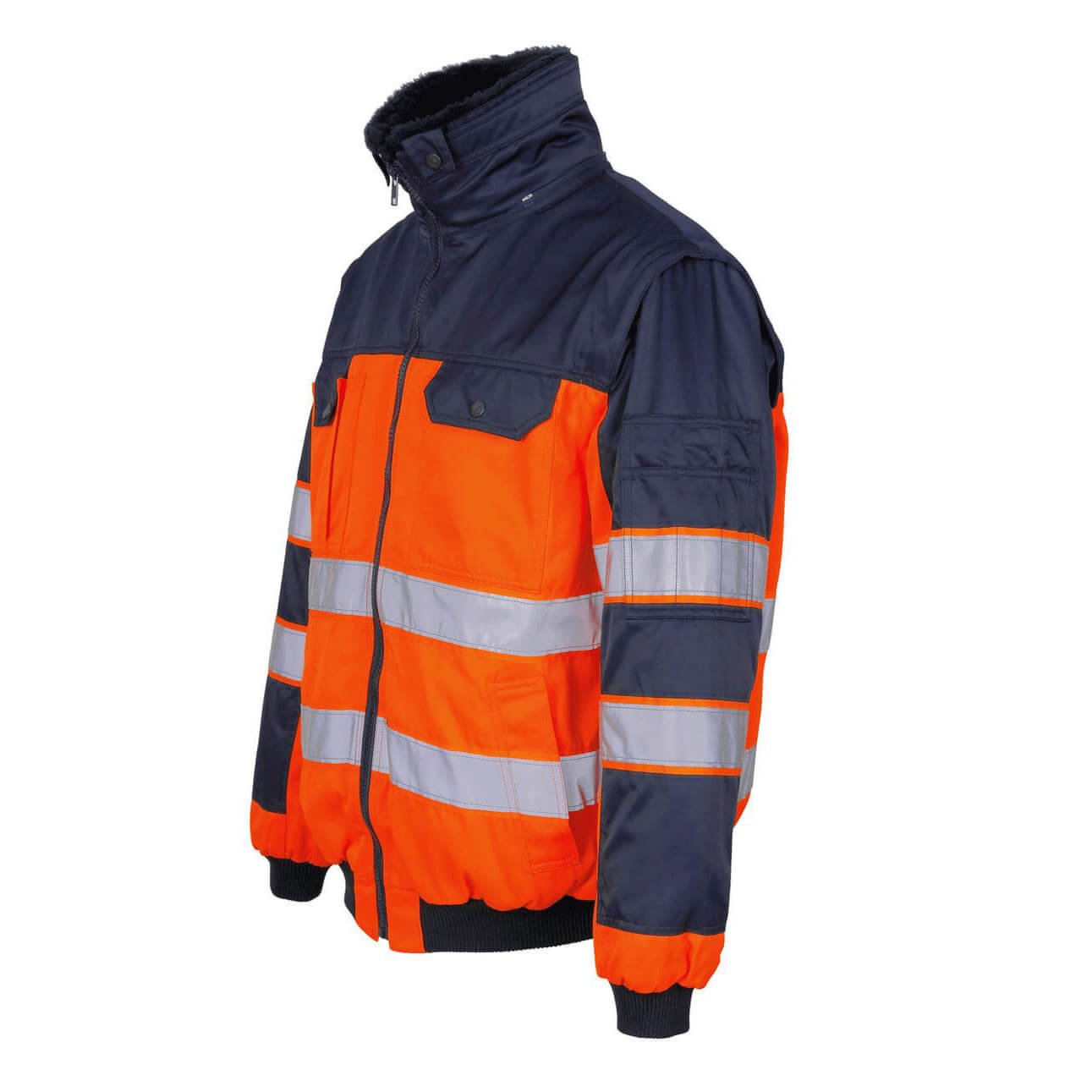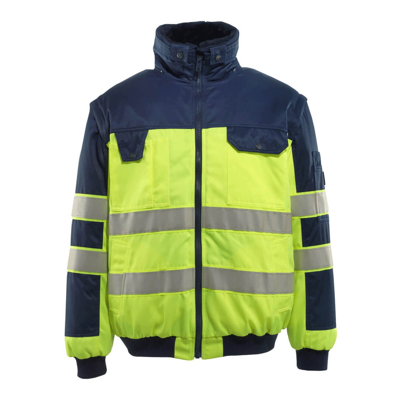 Experience versatility like never before with this high-performance, water-repellent work jacket designed for adaptability in all conditions. Featuring a detachable pile lining and collar, this jacket transforms seamlessly to match your needs. The zip-off sleeves convert it into a vest for added flexibility, while the internal storm flap and ribbed waist and cuffs ensure warmth and protection. High-visibility fluorescent fabric with reflective tape enhances safety, making it an essential for professionals in demanding environments.