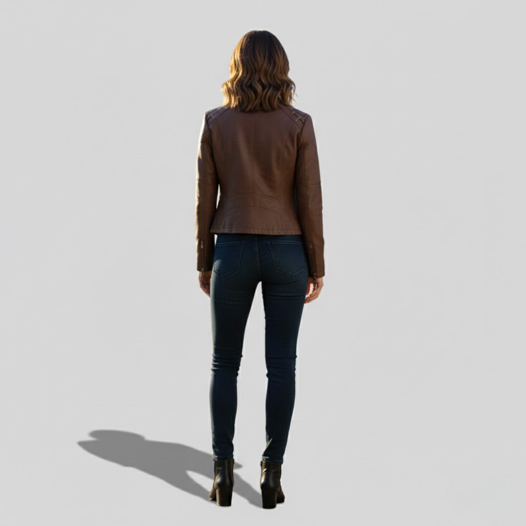 This women’s fashion jacket is designed to deliver a perfect balance of elegance and edge. Tailored with a slim-fit silhouette, it enhances the natural shape while offering all-day comfort. The rich, textured leather finish gives the jacket a premium look, making it a standout piece for modern wardrobes.