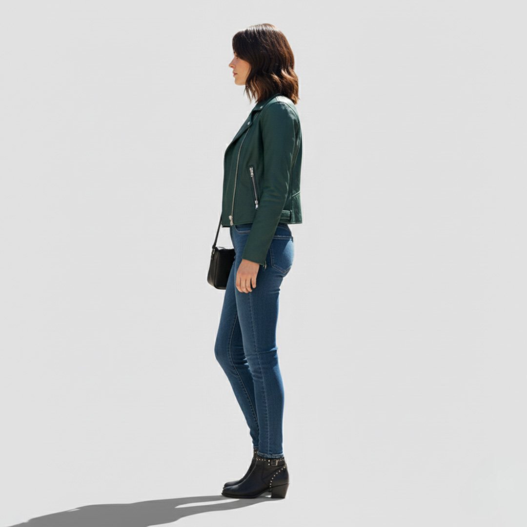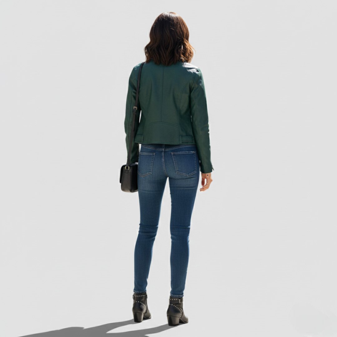 This women’s fashion jacket is designed to deliver a perfect balance of elegance and edge. Tailored with a slim-fit silhouette, it enhances the natural shape while offering all-day comfort. The rich, textured leather finish gives the jacket a premium look, making it a standout piece for modern wardrobes.